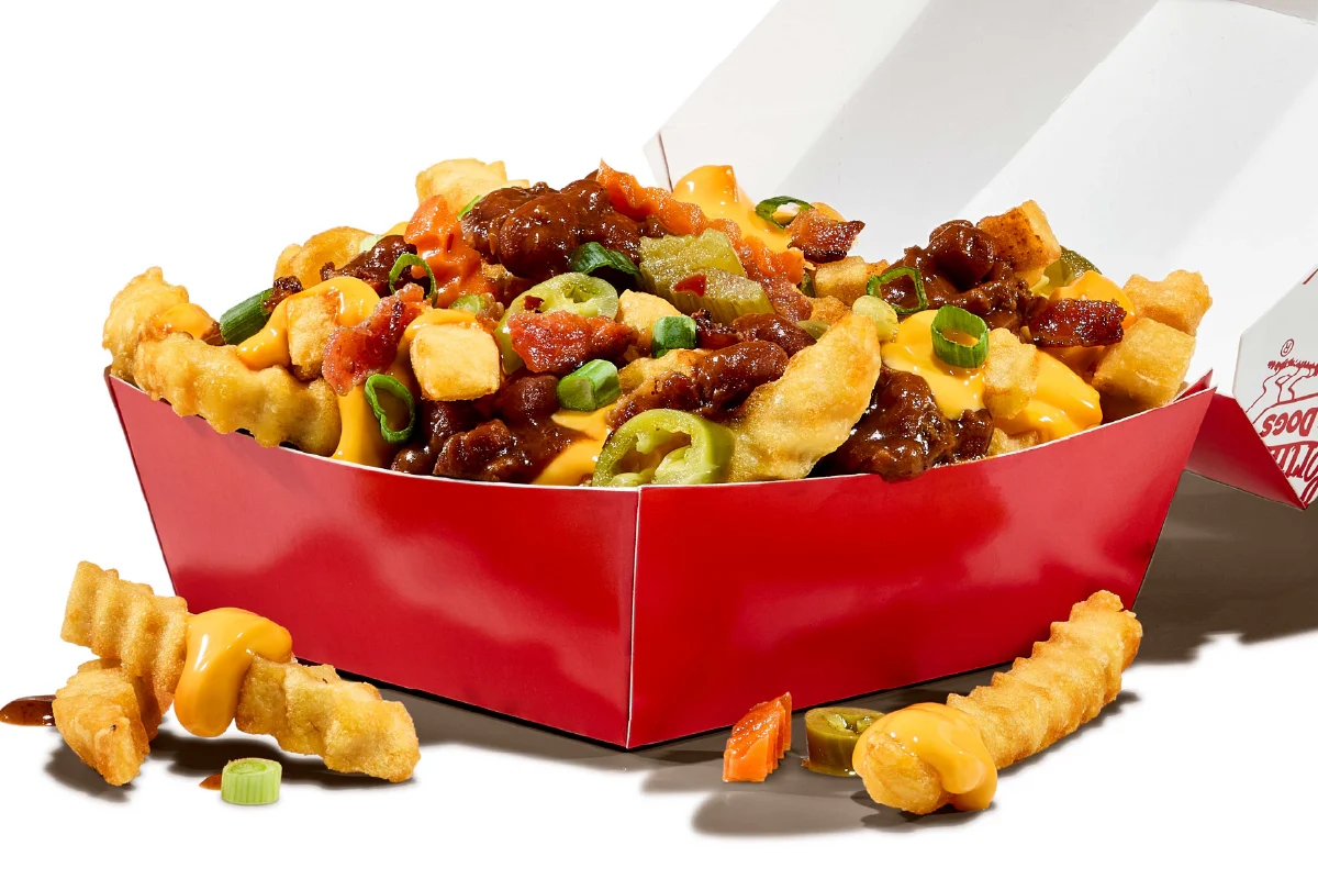 The crinkle-cut fries you know and love, now topped with cheese sauce and chili. Get it loaded with bacon, green onions, and hot giardiniera!